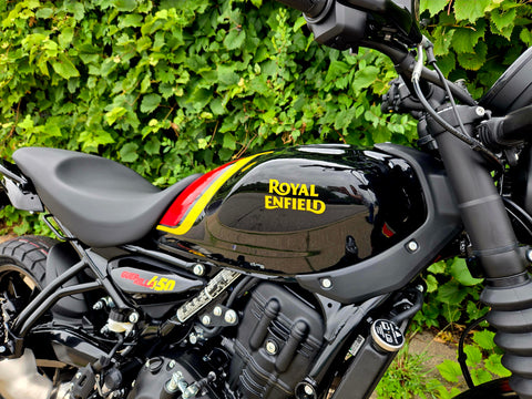 The Royal Enfield Guerrilla 450 has been calibrated by riders, not robots, for real world riding. Made for every rider at every level of riding experience, it delivers maximum sensation and agility, no matter which power band you are in. An upright riding stance, approachable seat height and ultra-responsive chassis make it the perfect machine for everyday, any day riding—from traffic to twisties.